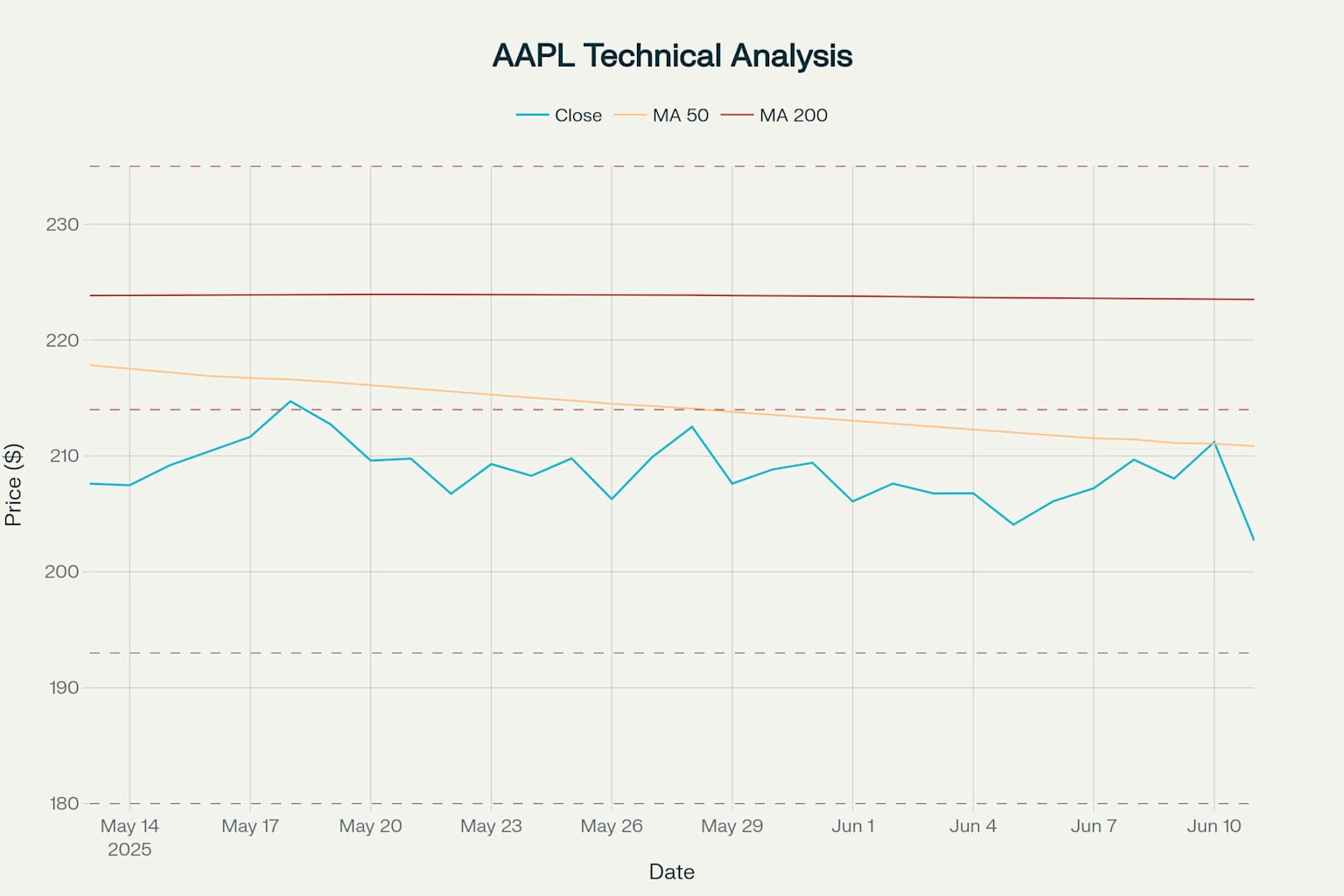 WWDC가 끝난 뒤 Apple의 2025년 6월 10일 주가는 $202.67로 2025년 들어 -19%의 부진한 성과를 보이고 있으며, 매그니피센트 그룹 중 가장 약한 모습을 나타내고 있습니다. 기술적 분석을 통한 매수/매도 포인트, EDGAR 재무 분석, 그리고 폴더블 iPhone 출시를 포함한 주요 모멘텀 요인들을 종합해서 분석해볼 예정입니다.