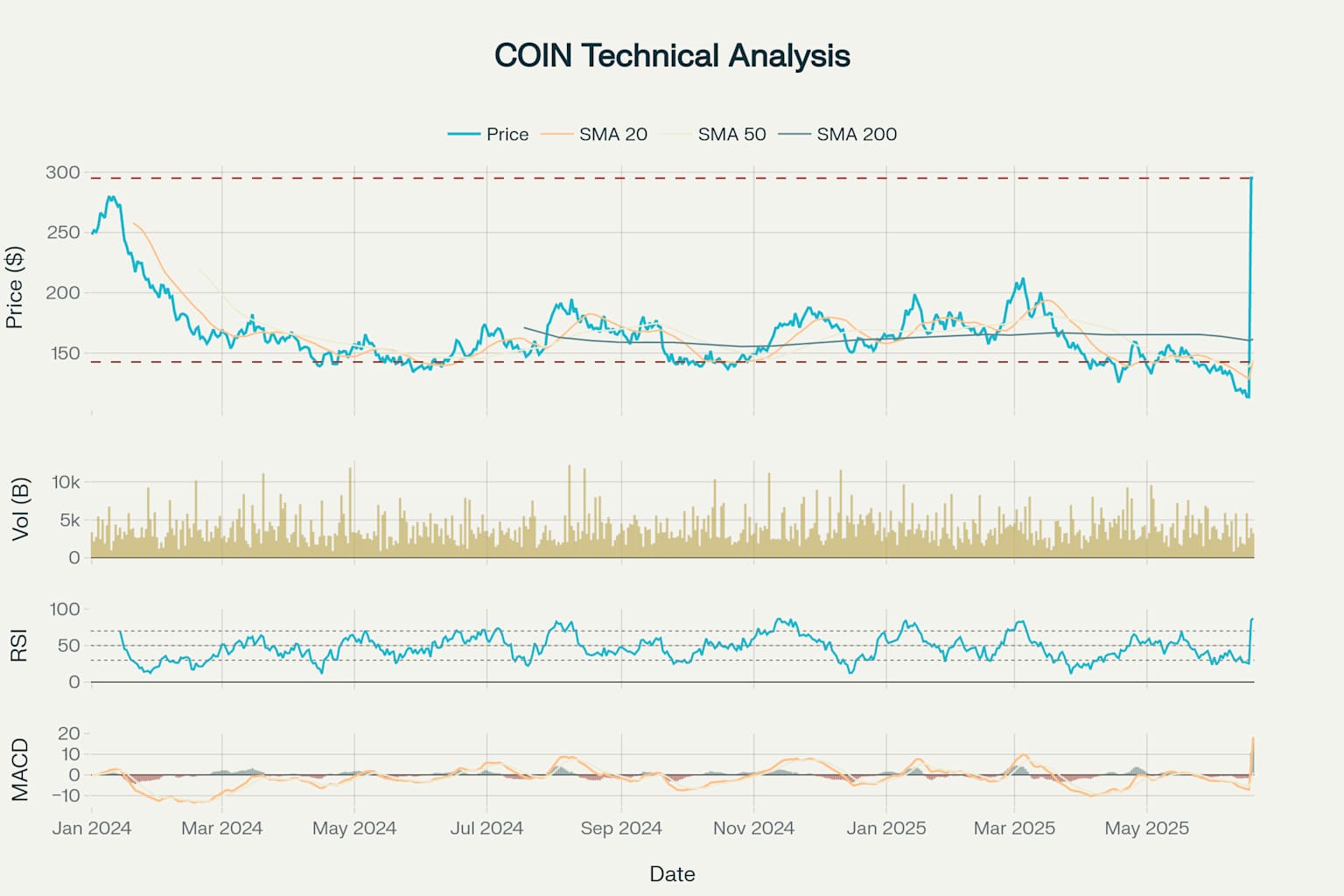 | $200-230 | 적극 매수 | RSI < 40 | 강한 지지선 매수 기회 |