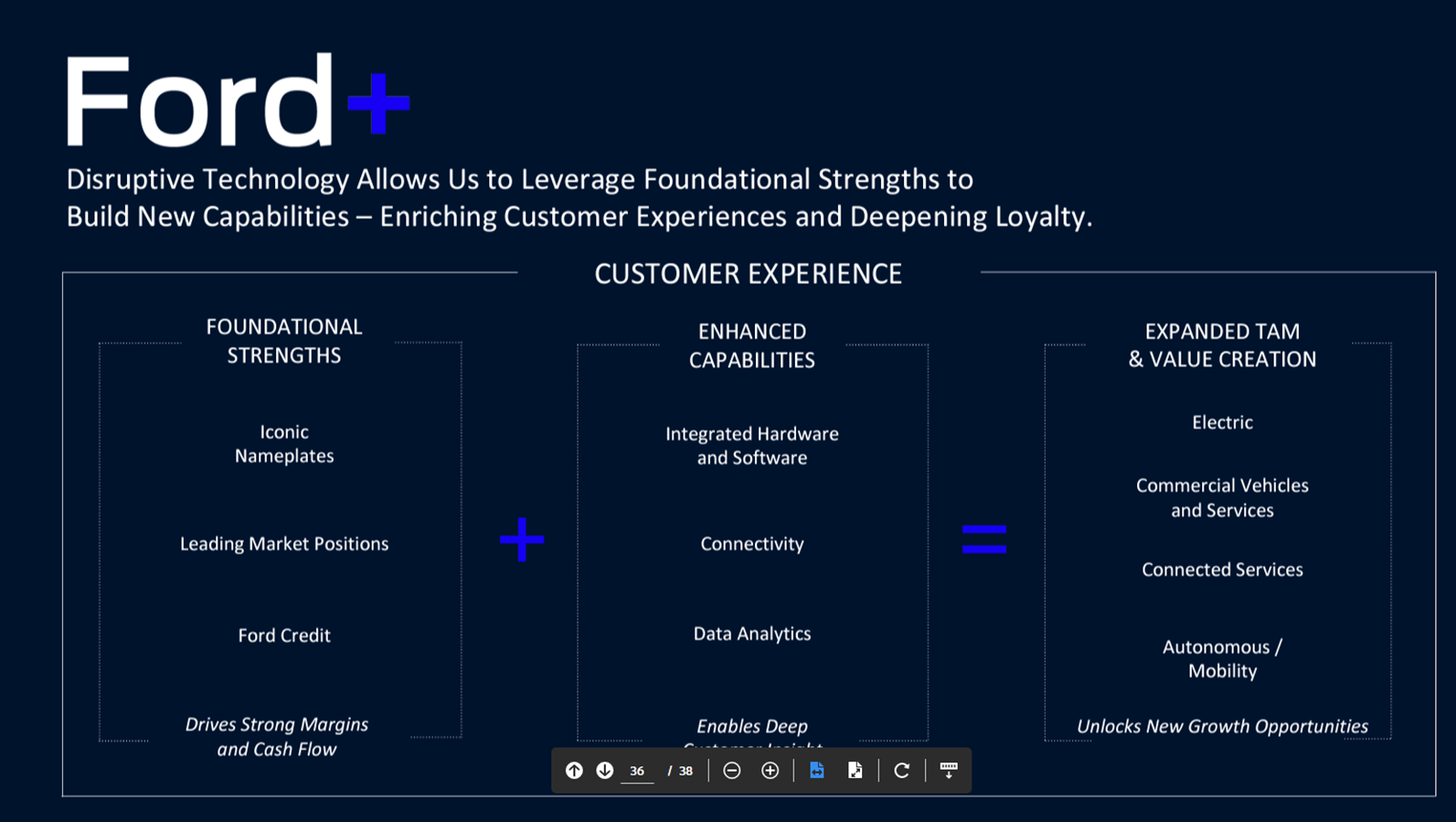 포드도 역시 단독으로 1천만 대 이상의 플랫폼 투자 여력이 부족한 상황이다.포드의 사업구조는 다른 자동차 기업들 대비 어려운 것은 사실이다. Low single 영업이익률이 Zero에 가깝다는 사실은 시사하는 바가 크다고 할 수 있다. 사실 VW의 MEB 플랫폼을 쓴다는 이야기도 자체 투자가 어렵기 때문이다. 연간 500만대 매출 규모에서 더 성장하기기 위해서는 다른 곳간이 필요하다. 포드+의 내용을 보더라도 인상깊은 부분은 상용차 신규 사업부 'Ford Pro'를 출범해서, 상용 하드웨어와 관련 서비스 확대를 통해 2025년에 매출 450억 달러 달성을 목표로 하고 있다. 또한 자체 데이터 플랫폼 출시를 통해 2028년까지 3,300만대 차량에 신규 OTA 적용을 목표로 하고 있다.