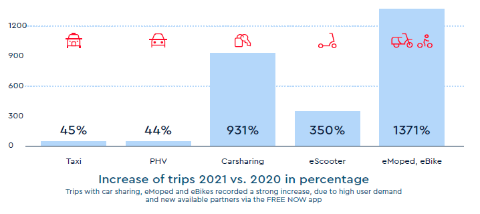 FREE NOW가 가는 길을 보면, 뭔가 담대한 한걸음을 내딛는거 같다. 향후의 자동차 보유 증가에 대한 대응과 공공 교통 이용 촉진에 기여, 탈탄소 사회의 실현에 적극적으로 임할 것이라고 밝혔다. MaaS 리포트 2022에 따르면 올해는 멀티 모 빌리티가 주류가 될 것이고 회사 차량의 대체로서 예산에 따라서 복수의 모빌리티를 사용 가능하게 하고, 다양한 옵션과 새로운 모빌리티 모드의 통합을 추진해 모든 교통 수요를 커버하며 신속하고 마찰 없는 도시 이동을 실현하겠다고 밝혔다.